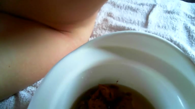 Slim girl shitting a large turds