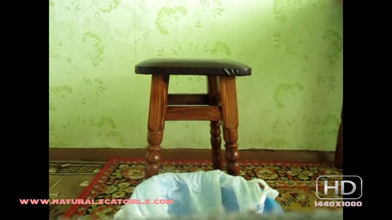 Amateur lady pooping on the plastic bag