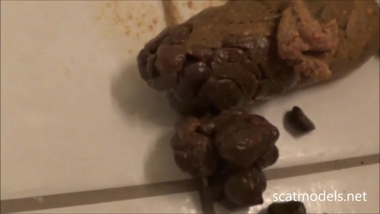 Pierced pussy lips girl shitting a black shit