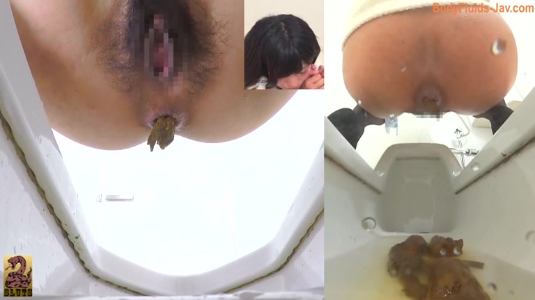 Thick wet hairy pussy Japanese woman pooping