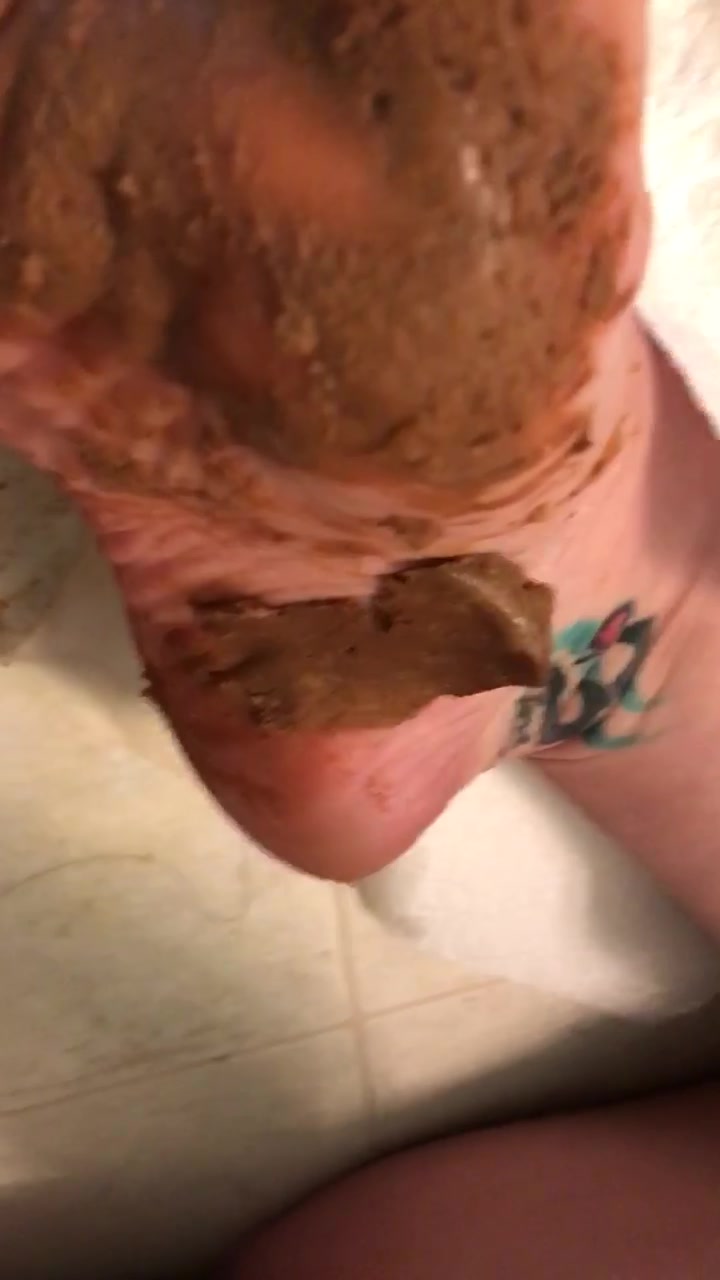 Amateur girl smears shit between her bare feet