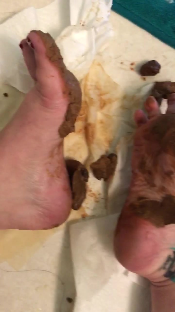 Sexy scat pig rubs her own shit between her feet
