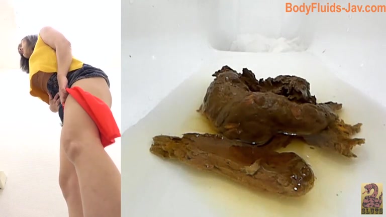 Lovely brunette Japanese girl poops in toilet