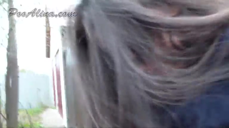 «This video shows Alina, very well dressed, in an open area, between fenced off properties and open, semi=wooded country, she lifts up her coat, drops her jeans and underwear, and proceeds to poo in super bulky fashion, following which she wipes, pulls up her clothes, and makes as if to walk away; however, she then returns and squats alongside her deposits, and grins broadly to the viewers; she is wearing eye shades, but is, otherwise, very recognisable as Alina. This comment was entered last night; where has it gone?»