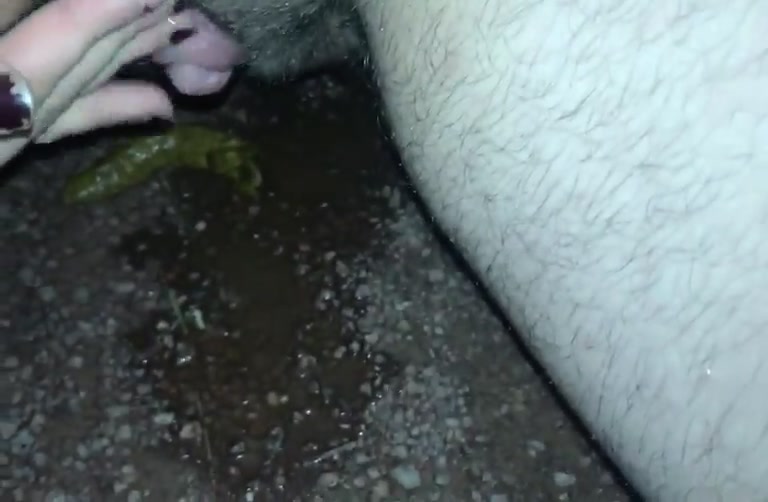Hot brunette shitting outdoor