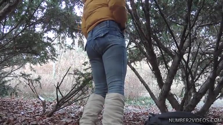 Woman shitting and pissing in the forest