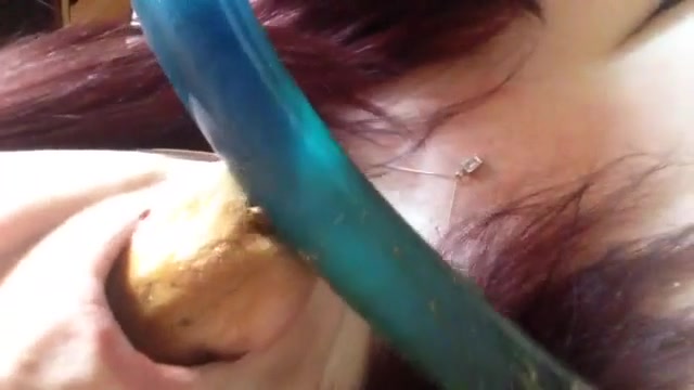 after she stuffed the massive dildo in her ass she licks it clean dirty scat girl