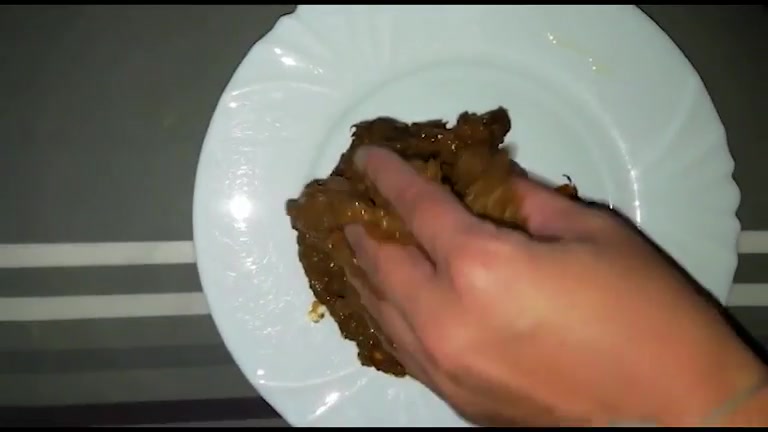 Pretty slut shitting on a pizza box