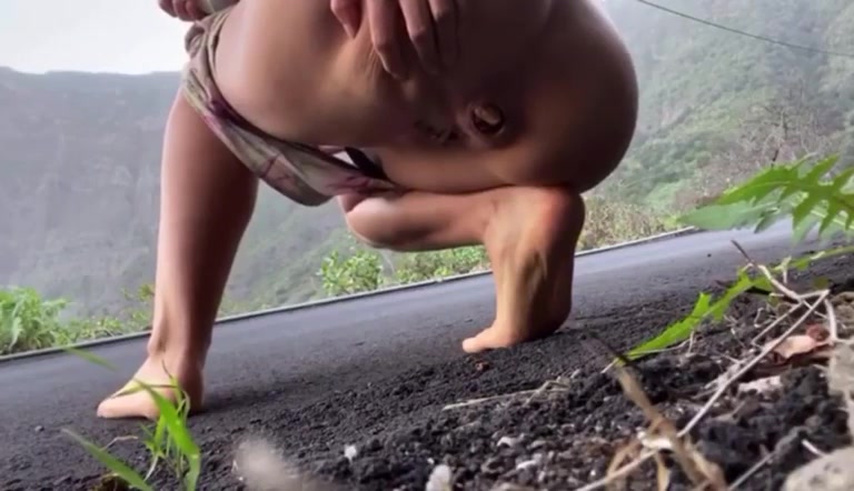 Asian girl with curvy ass pooping