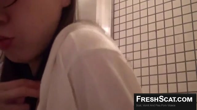 Japanese girl in glasses pooping video
