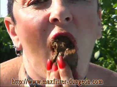 Huge titty slut eating her shit outdoor