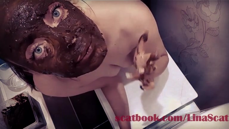 Hot brunette smears shit on her face