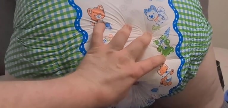 Girl pooping in a baby's diaper
