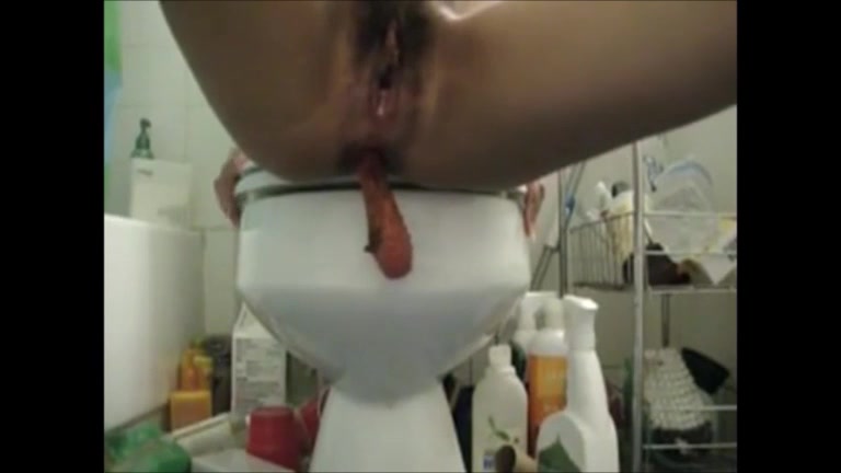 Long dildo makes her poop easily