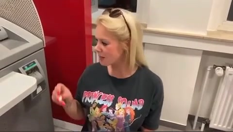 Blonde office lady takes messy load on her face