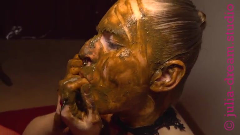 Stunning scat bitch playing with her messy poop