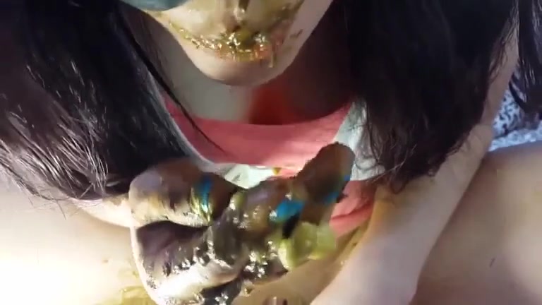 Beauty and messy scat eating babe
