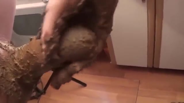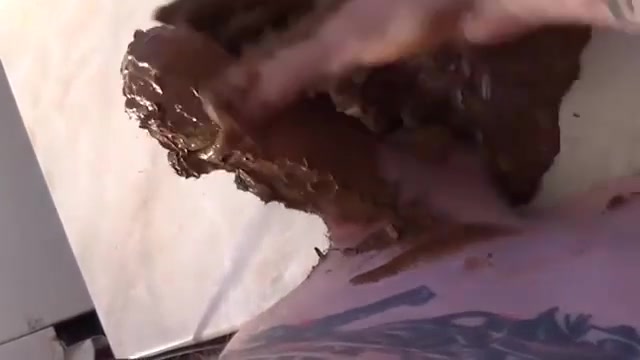 Chubby Russian girl smearing poop