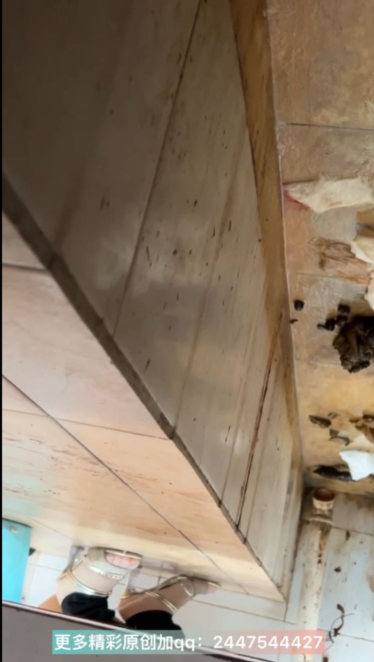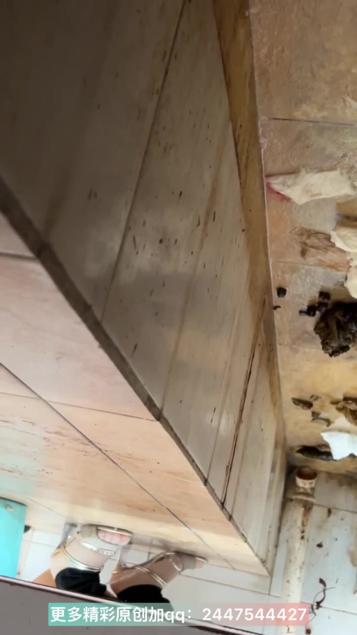 The girl defecated heavily in the toilet