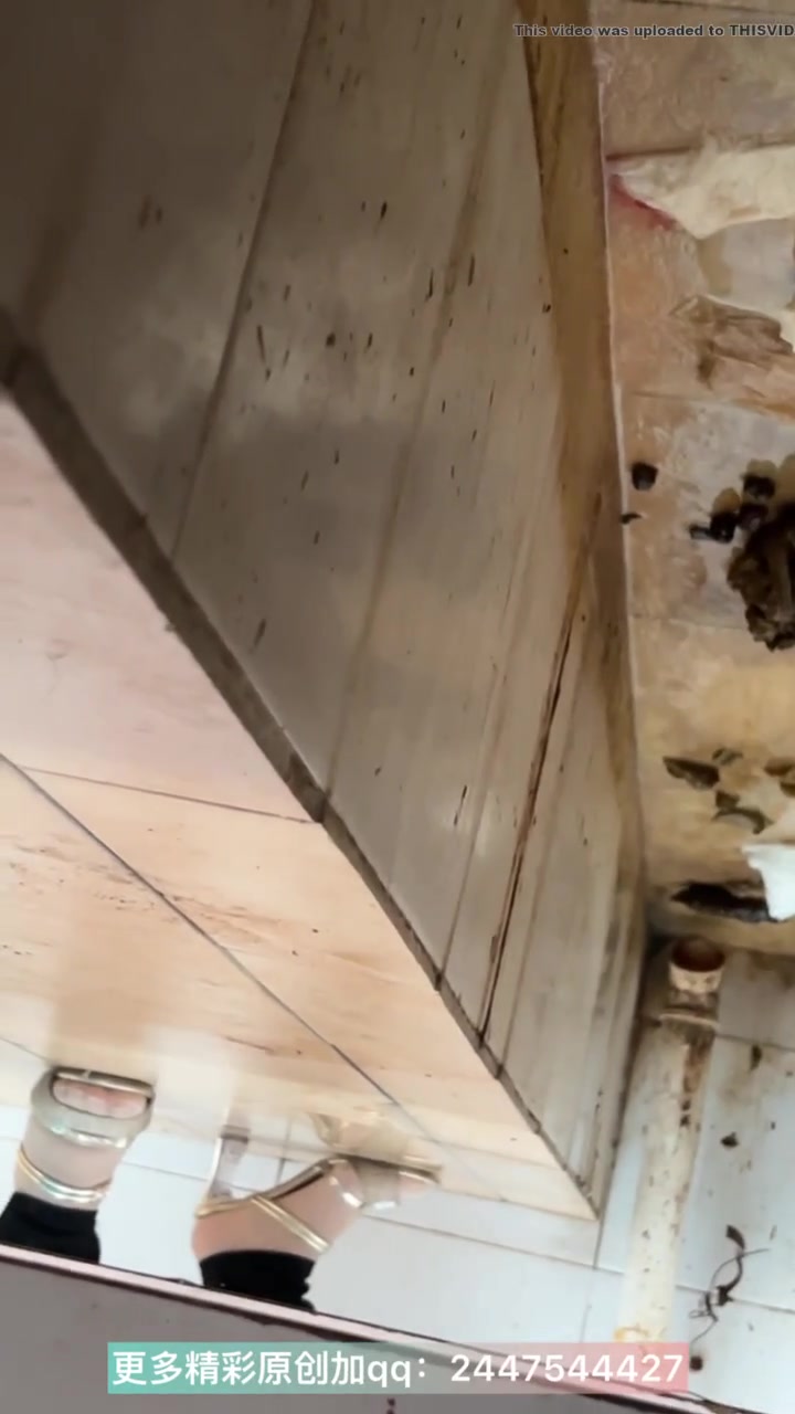 Skinny girl in high heels pooping