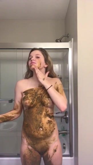 Nasty redhead gal shit smearing play