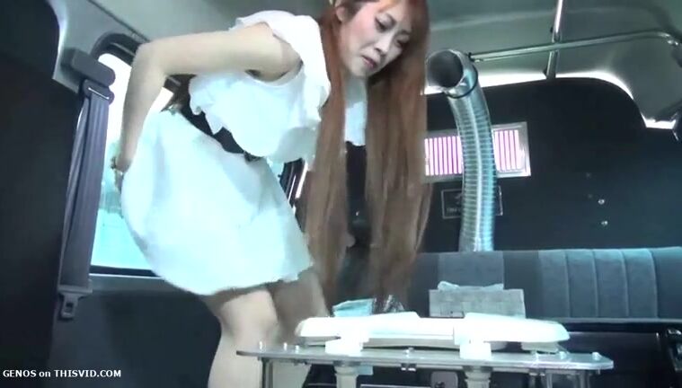 Slutty Japanese lady shits for slave in the car