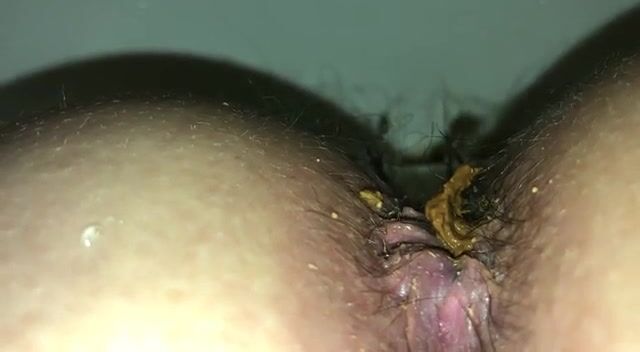 Hairy pussy girl poop closeup