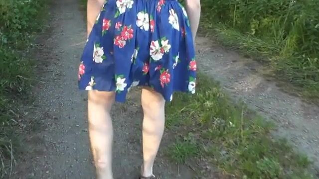 Gorgeous white babe poops outdoor