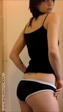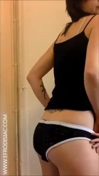 Shaking her ass while pooping