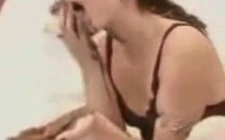 Girl spreading and licking the shit on her hands.