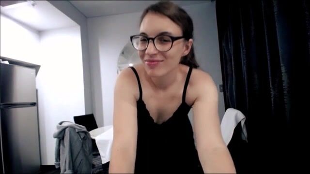 Brunette with glasses masturbating and shit with cum