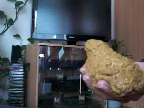 Lady poops heavily in hand