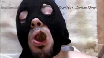 Dude in mask eating big turd