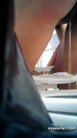 Stunning smooth ass and shaved pussy girl pooping in the tub