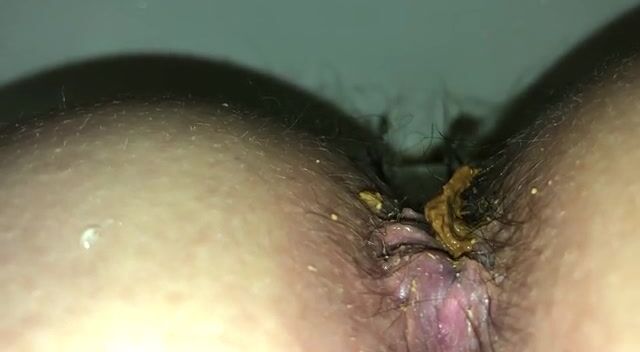 Beautiful girl pooping in close up