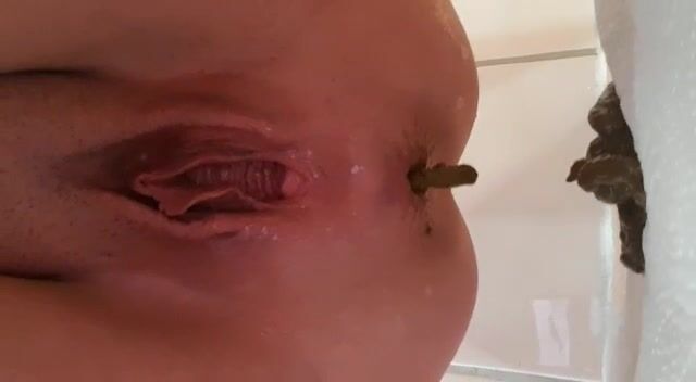 Pierced pussy lips girl shitting a black shit