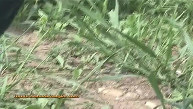 Naught babe with smooth ass pooping in the forest
