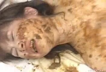 Brunette teen smearing poop on her own feet