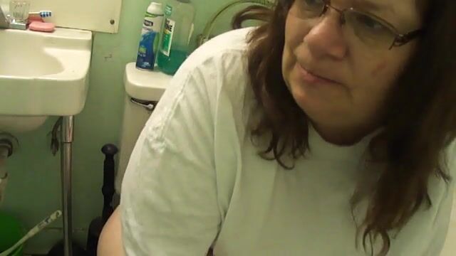 Nerdy mature lady in glasses pooping