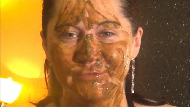 Kinky gal smearing shit on her pussy