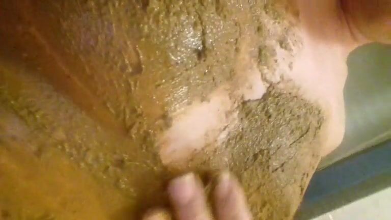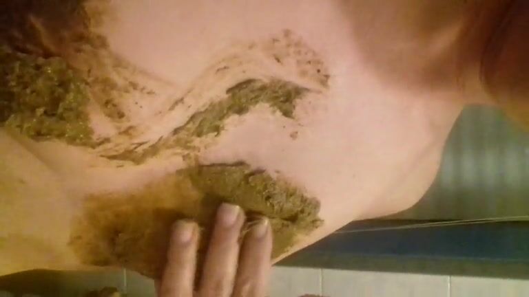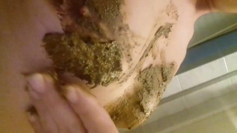 Brunette housewife smearing poop on her entire body