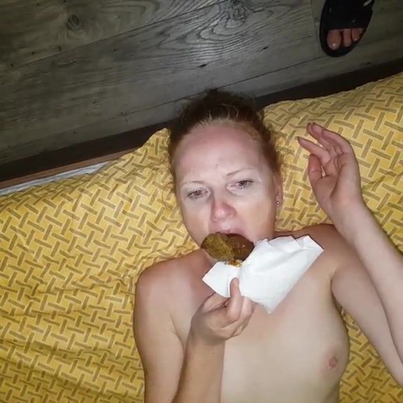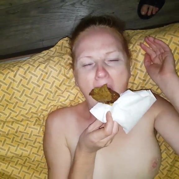 Blonde wife mouth filled with shit