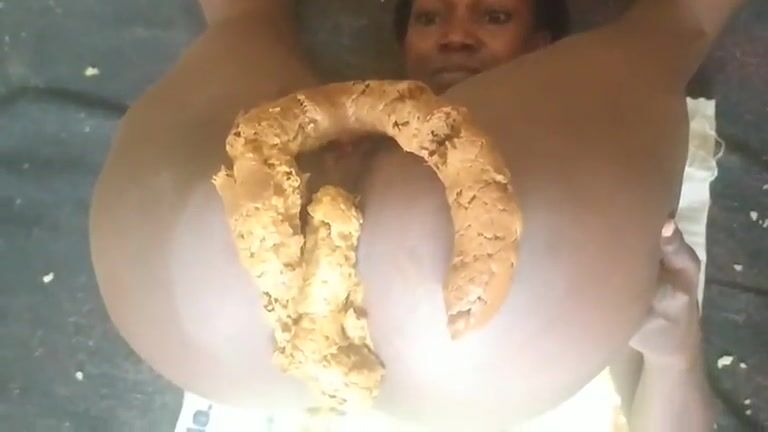 Cheeky cute ebony girl pooping closeup