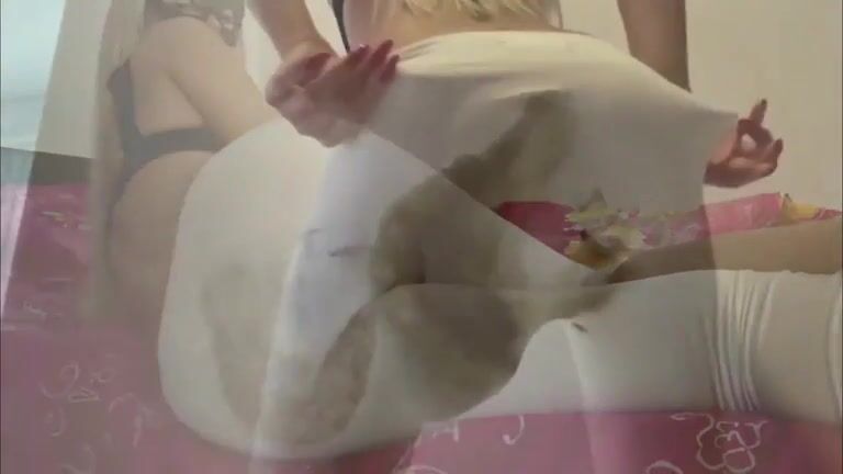 Dirty lady poops in her white leggings