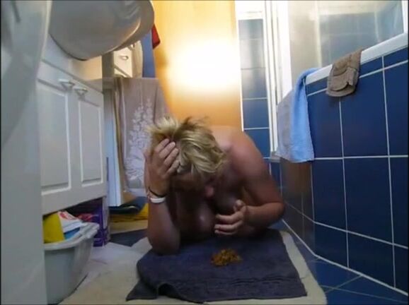 Blonde mature lady poops thick load