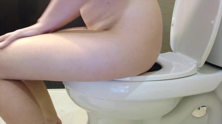 Naked girl poops in the toilet