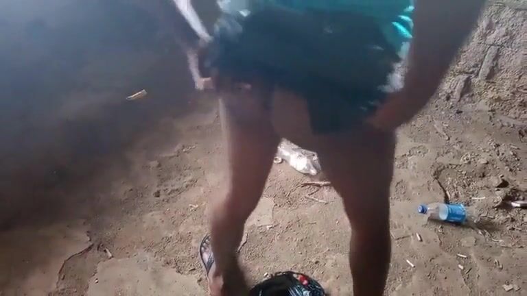 African girl and sexy poop in an abandoned building
