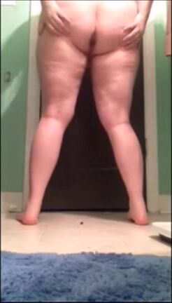 Fat ass mature woman shitting in standing pose