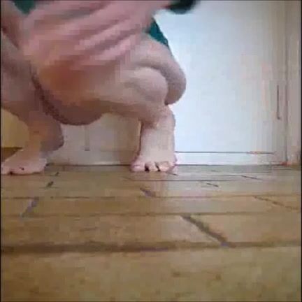 Babe in pink tanga shitting on the floor