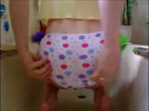 Sexy college girl shitting in white diapers